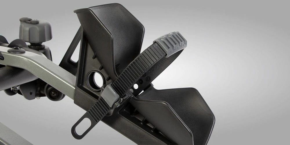 Sangles et bras rembourrés pour sécuriser facilement les vélos avec protection.